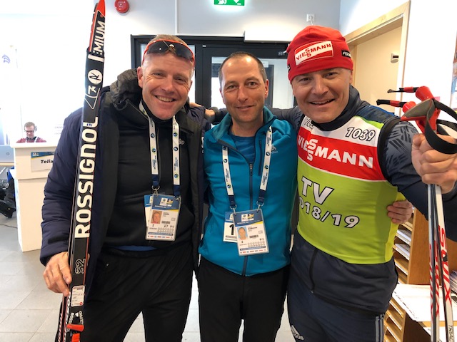 Das Bild, dass Ihr oben seht, ist nur ein kleiner Ausschnitt aus dem täglichen Legendenauftritt während der Biathlon-Weltmeisterschaft in Östersund. Matthias Simmen (links) aus der