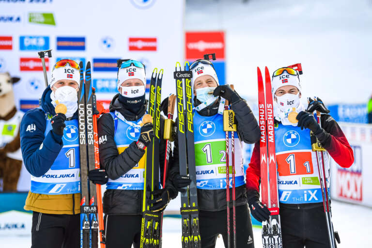 Double gold for Norway After the women, Norway also won gold in the men’s 4 x 7.5 km relay. From the start they took the