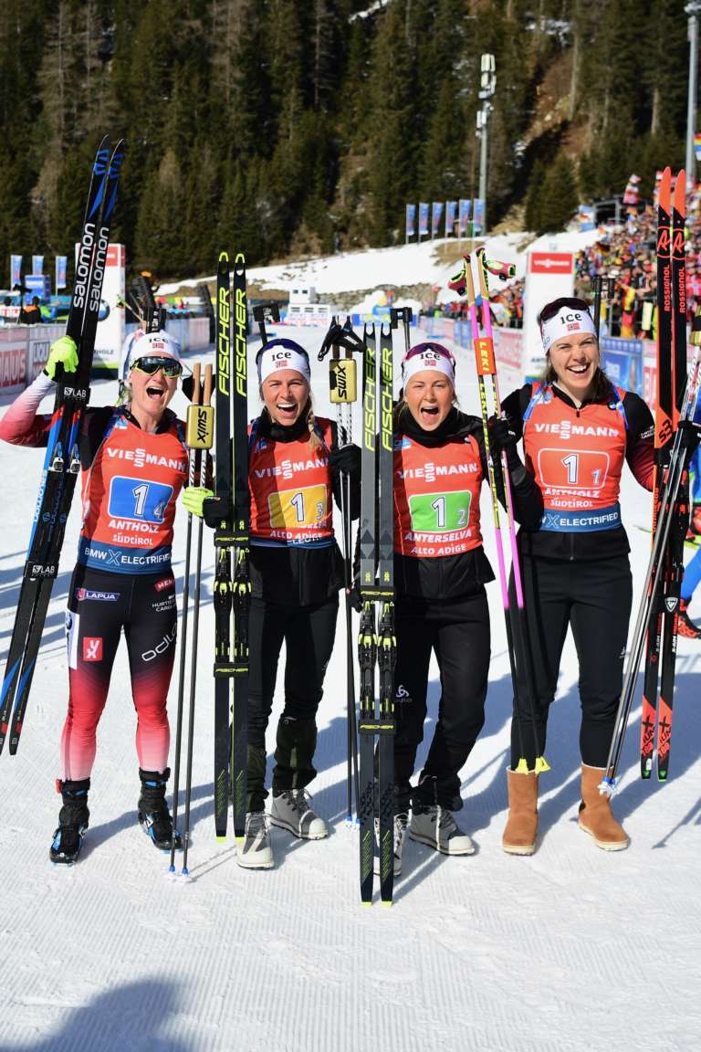 Einen hart umkämpften und zum Schluß sicheren Sieg gab es für Norwegens Staffeldamen im 4 X 6 Km WM Rennen von Antholz. Trotz einer Strafrunde
