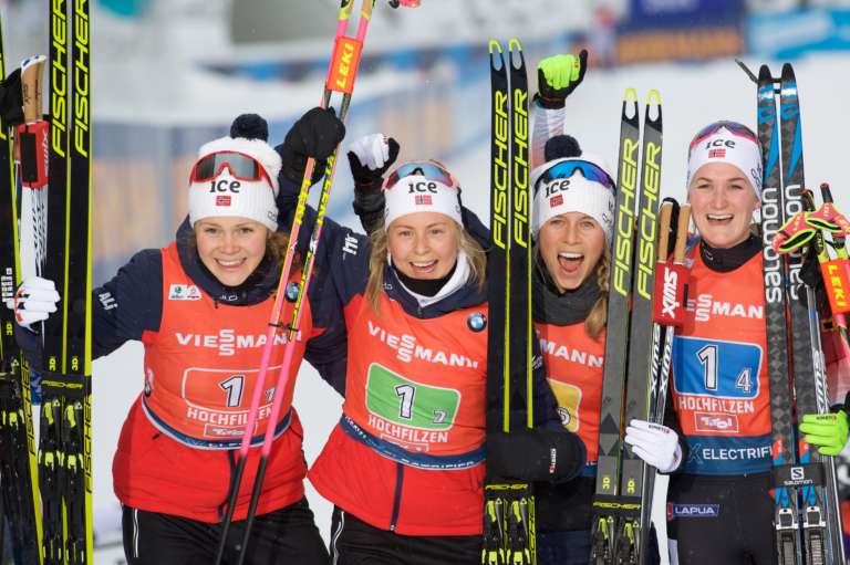 Trotz einer Strafrunde im 4 X 6 Km Staffelrennen von Hochfilzen wiederholten die Norwegischen Biathlon Damen ihren Sieg von Östersund und waren einmal mehr nicht