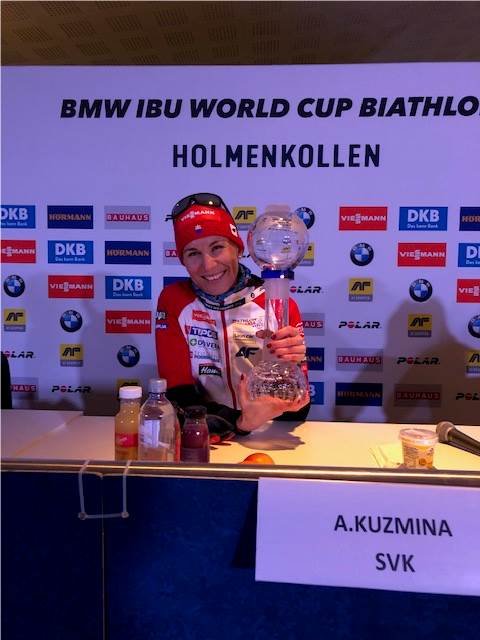 Einen Doppelsieg gab es für Anastasiya Kuzmina zum Abschluss ihrer Karriere beim Weltcup Finale am Holmenkollen in Oslo. Nach ihrem Sprintsieg beherrschte sie auch das
