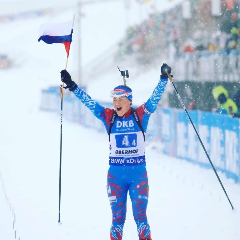 Mit Ekatarina Yurlova-Percht als Schlussläuferin gewann das Russische Damenquartett die 4 X 6 Km Damenstaffel am letzten Tag des Biathlon Weltcups von Oberhof bei dichtem