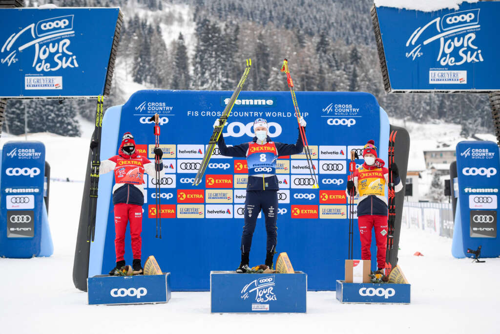 Die russischen Langläufer haben in den letzten Tagen die Tour de Ski in allen Rennen und Etappen deutlich dominiert. Doch heute im klassisch Sprint ein Schwede dagegen halten: Oskar Svensson. Doch gleich darauf an zweiter Stelle platzierte sich das russische Team, mit Gleb Retivykh. Im folgte Alexander Bolshunov auf Platz drei. Mit diesem Podium hält er sich weiterhin an der Spitze der Gesamtführung in der Tour de Ski. Bei den Damen kamen die Siegerin und die beiden Podest platzierten ebenfalls aus Schweden. Linn Svahn dominierte vor Maja Dahlqvist und Emma Ribom. Auf Platz fünf lief die Russin Natalia Nepryaeva vor ihrer Landsfrau Tatiana Sorina auf Platz fünf.