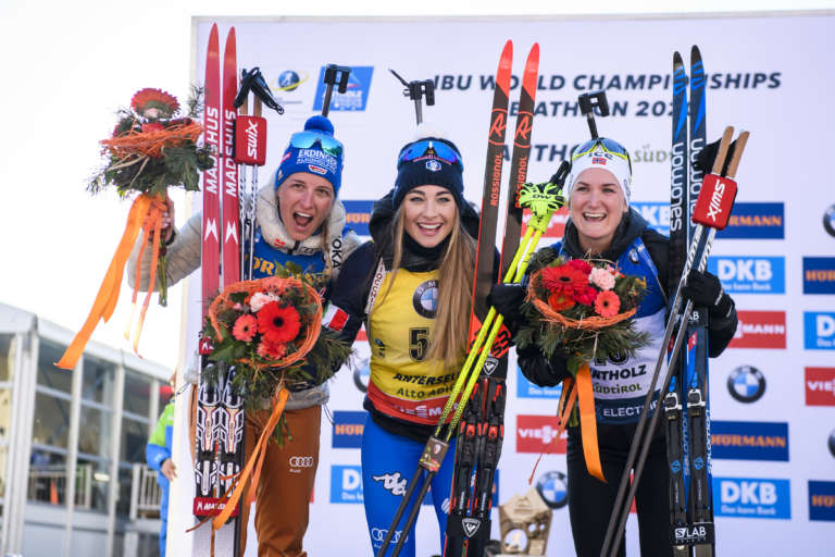 Nach ihrem Sieg und der Goldmedaille im Verfolger, gab es das zweite WM Gold und damit den Zeiten WM Titel für die Lokalmatadorin Dorothea Wierer. In