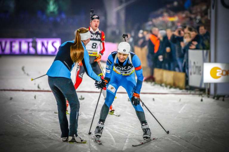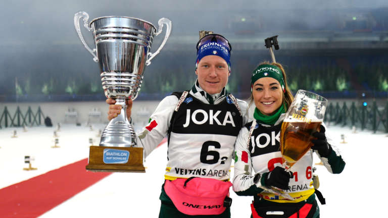 Die Titelverteidiger kehren nach Schalke zurück: Dorothea Wierer, aktuell Gesamtweltcupsiegerin der Saison 2018/2019, und Lukas Hofer treten bei der JOKA Biathlon World Team Challenge 2019
