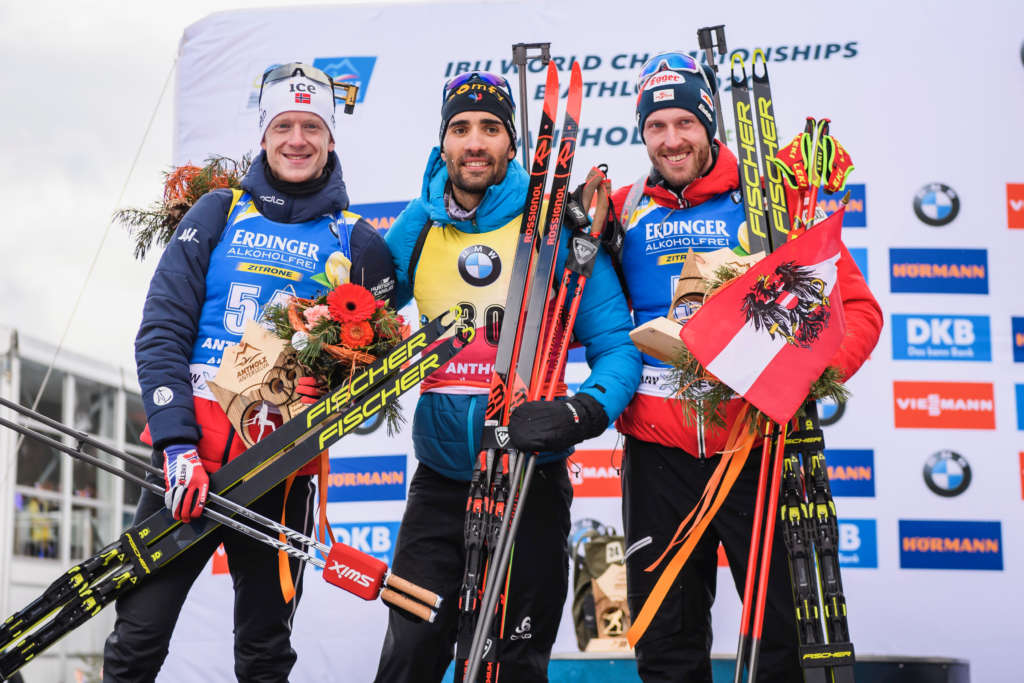 Das Duell der wohl momentan beiden besten Biathleten konnte Martin Fourcade im 20 Km Individuell Rennen gegenüber Johannes Thingnes Boe für sich entscheiden,gewann bei der WM in Antholz seinen 11. Weltmeistertitel, und sicherte sich trotz einer Strafminute ( letzter Schuss ) die Goldmedaille.