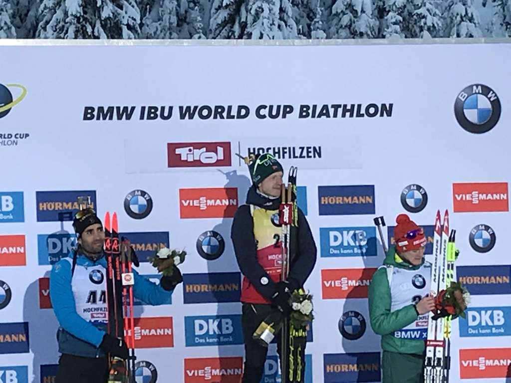 Mit Startnummer 44 ins Rennen gegangen, zum Schluß auf Platz 2 mit einem Rückstand von 8,6 Sekunden auf den Sieger Johannes Thingnes Boe war die Ausbeute von Martin Fourcade im 10 Km Herrensprint von Hochfilzen. Platz drei ging an Benedikt Doll.