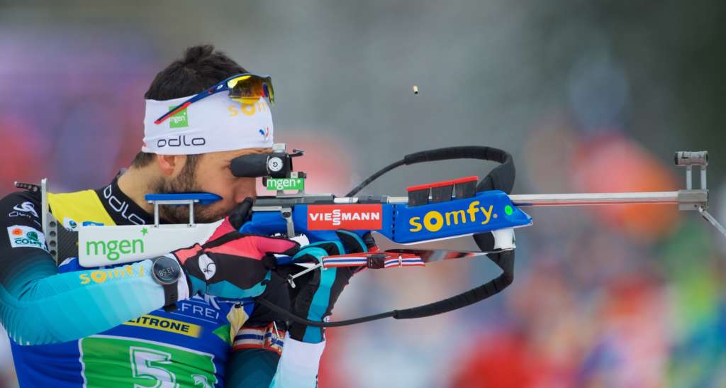 Martin Fourcade überraschend an Position zwei laufend belegte mit der französischen Staffel Platz drei,  hinter der deutschen Staffel als Zweite.