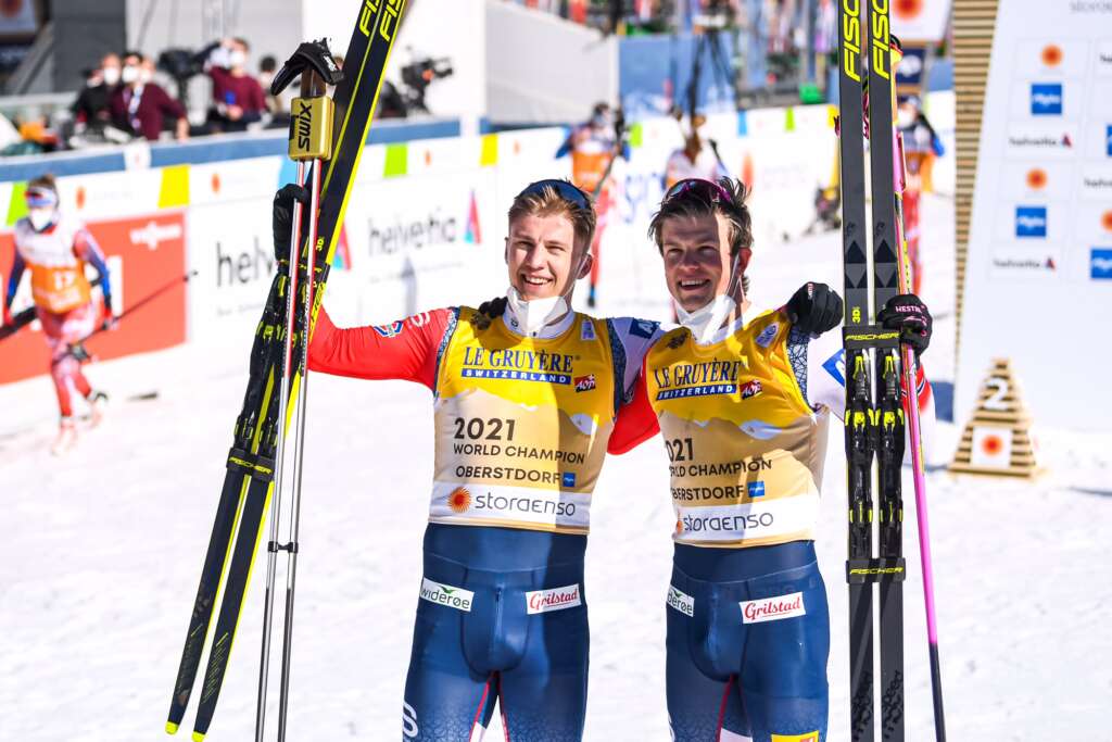 Bei den Herren gewann das Favoriten Team aus Norwegen. Erik Valnes und Johannes Hoesflot Klaebo setzten sich souverän an die Spitze und wurden Weltmeister. Für den jungen Erik Valnes war dies der erste richtig große Erfolg in seiner Karriere, die in diesem Jahr so richtig Fahrt aufgenommen hat. Platz zwei belegten die Finnen, die sich kurz vor dem Ziel noch an zwei enttäuschten Russen vorbei schoben. Trotzdem gab es für Alexander Bolshunov und Gleb Retivykh noch grund zu jubeln: Die bronzene Medaille.